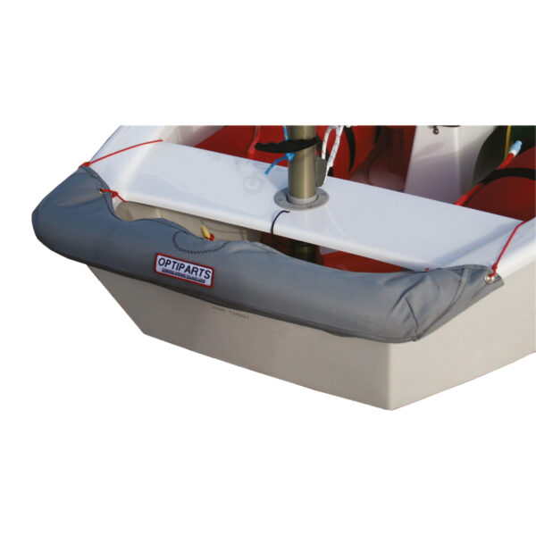 Foam tubing covered by heavy duty polyester cloth. This bumper has a snug fit around the bow of the Optimist. Ideal for sailing schools.