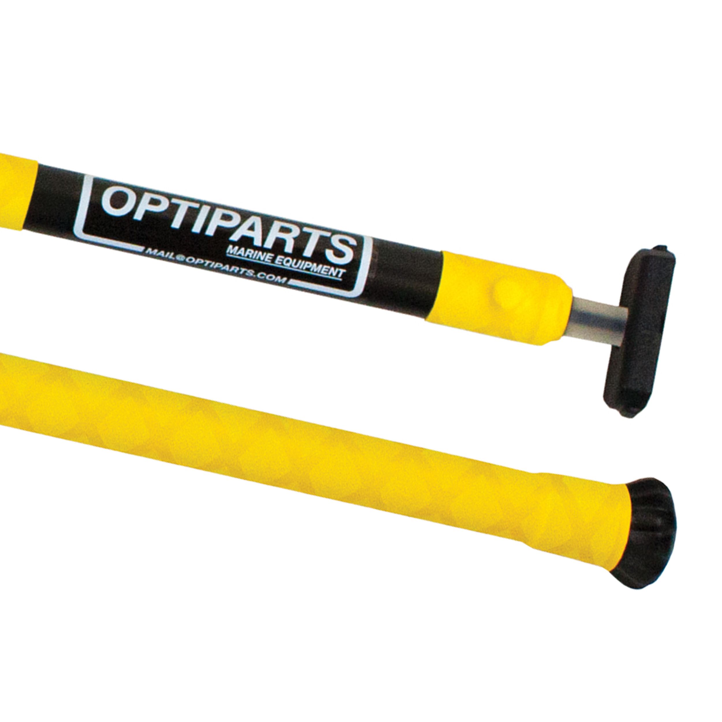 A 20 mm black anodized aluminium 60 cm tiller extension for the Optimist. Fitted with yellow x-gripped heat shrinkable tubing and a releasable joint with rope core.