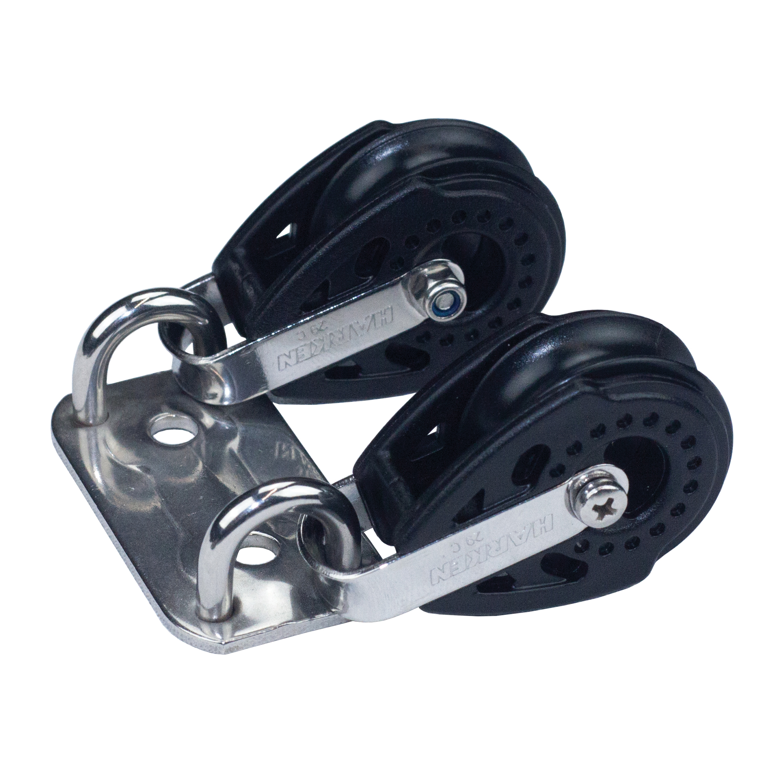 Stainless steel double pad eye for Laser® / ILCA® outhaul and cunningham upgrade. Supplied with 29mm ball bearing Harken blocks.
