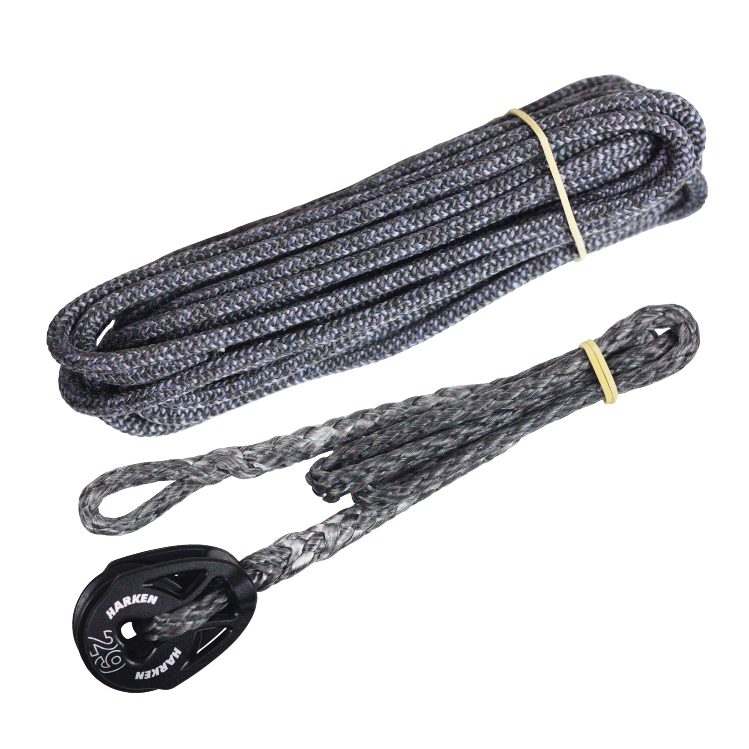 Cunningham system for Laser® 4.7 and Radial and ILCA® 4 and 6 with a spliced 5 mm Dyneema® primary line with a 29 mm Harken Ti-Lite block. Comes with a 4 mm DB-Racing secondary control line, consists of a Dyneema® core and Technora / polyester cover for ultimate durability and grip. The spliced primary line is advised to attach to the top of the vang assembly. Cut at ideal length for direct use and the ability to add a loop handle or braided handle.