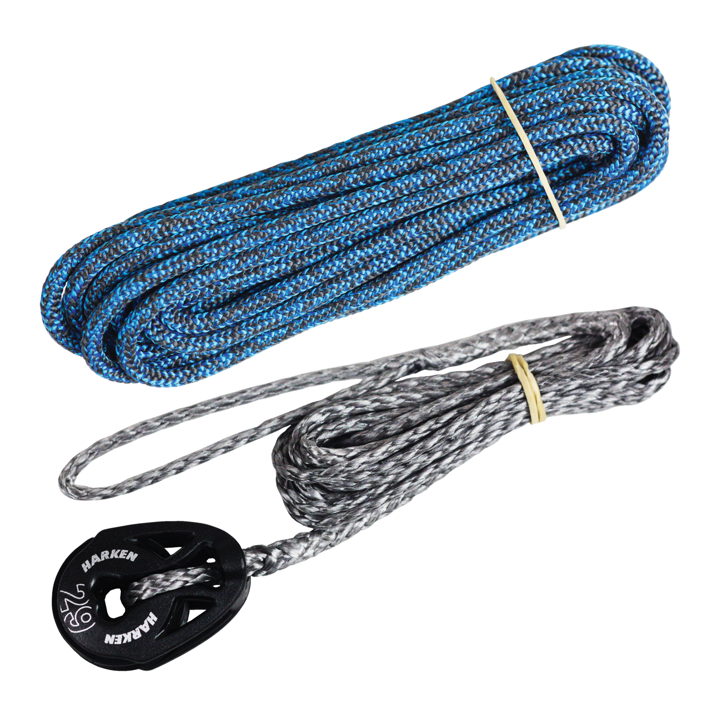 Outhaul system for Laser® Radial and MK2 and ILCA® 6 and 7 with a spliced 3 mm Dyneema® primary line with a 29 mm Harken Ti-Lite block. Made with a large loop which fits around the end of the boom for quick release. Comes with a 4 mm DB-Racing secondary control line, consists of a Dyneema® core and Technora / polyester cover for ultimate durability and grip. Cut at ideal length for direct use and the ability to add a loop handle or braided handle.