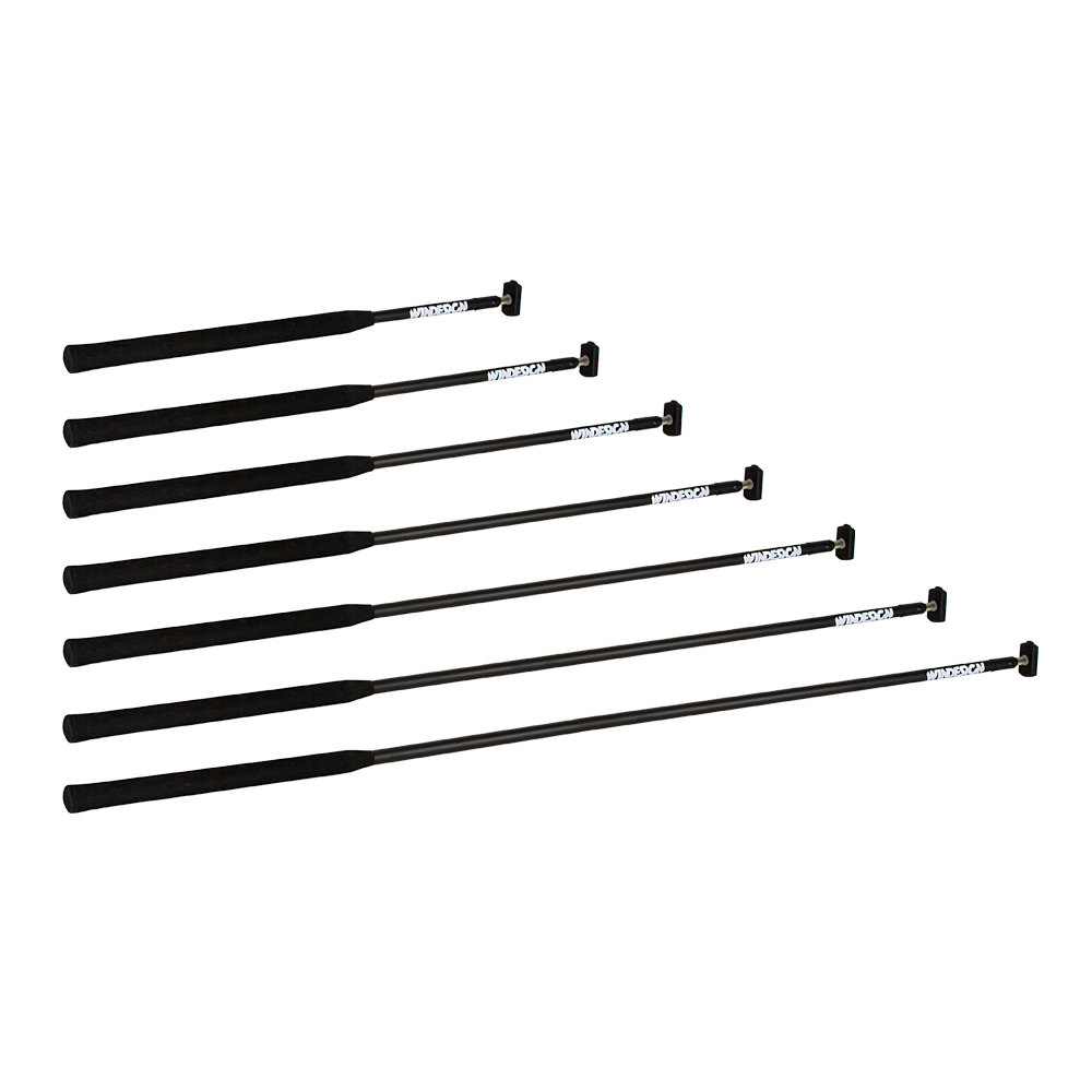 Made of black anodized 16 mm aluminium tube. The aluminium tiller extensions are fitted with a releasable rubber joint / swivel and an eva foam grip. The releasable rubber joint / swivel has a rope core and is mounted with an aluminium pin only. The pin is kept in place by a piece of heat-shrinkable tubing for easy replacement.