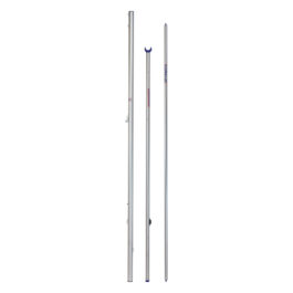 The UPGRADED Optimist mast is fitted with a stainless steel halyard block, aluminium Clamcleats, a nylon pin stop and two stainless steel eyes for fixing the head of the sail. The Optimist SCHOOL boom has blue nylon in- and outboard end fittings, a nylon outhaul cleat and nylon fittings for mainsheet and downhaul attachment. The UPGRADED Optimist sprit has blue sprit ends and 15 cm black tubing for protecting damage between the mast and the sprit.