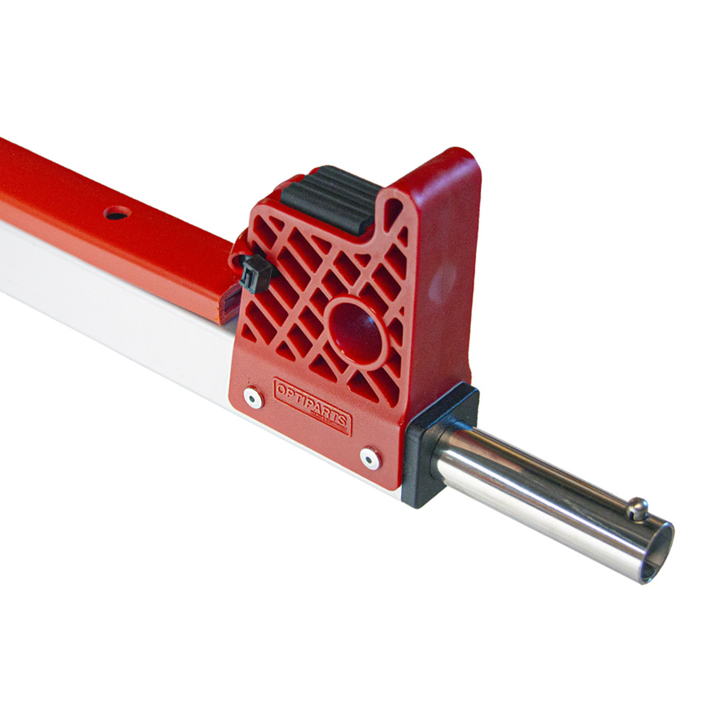 Lightweight aluminium trolley with stainless steel axles and solid hull supports. Supplied with Bow wow which is made of recycled environmental friendly plastic, a unique system to lock the bow to the trolley with one quick and simple movement. Prevents the hull from sliding off on steep launch ramps. The trolley has been designed to be the most functional available. Spring locking quick release of all parts allow the trolley to be disassembled in a matter of seconds for storage and travel. The frame has welded joints and is anodized to prevent corrosion. The Optiparts trolley is supplied with 8 mm stainless steel push button wheel locks which are mounted inside the stainless steel axles. Supplied with the large Durastar-lite puncture proof wheels.