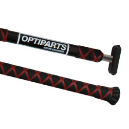 A 20 mm black anodized aluminium 60 cm tiller extension for the Optimist. Fitted with green x-gripped heat shrinkable tubing and a releasable joint with rope core.