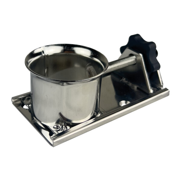 The most popular round type maststep for the Optimist dinghy. This Optimist maststep has an oval cup, which allows the mast to tilt forward when going downwind. Different mast rakes can easily be repeated using the scale on the base. Separately a mast step spring lock can be purchased. The stainless steel spring prevents the nut from turning accidentally. There is no need for additional locking nuts anymore.