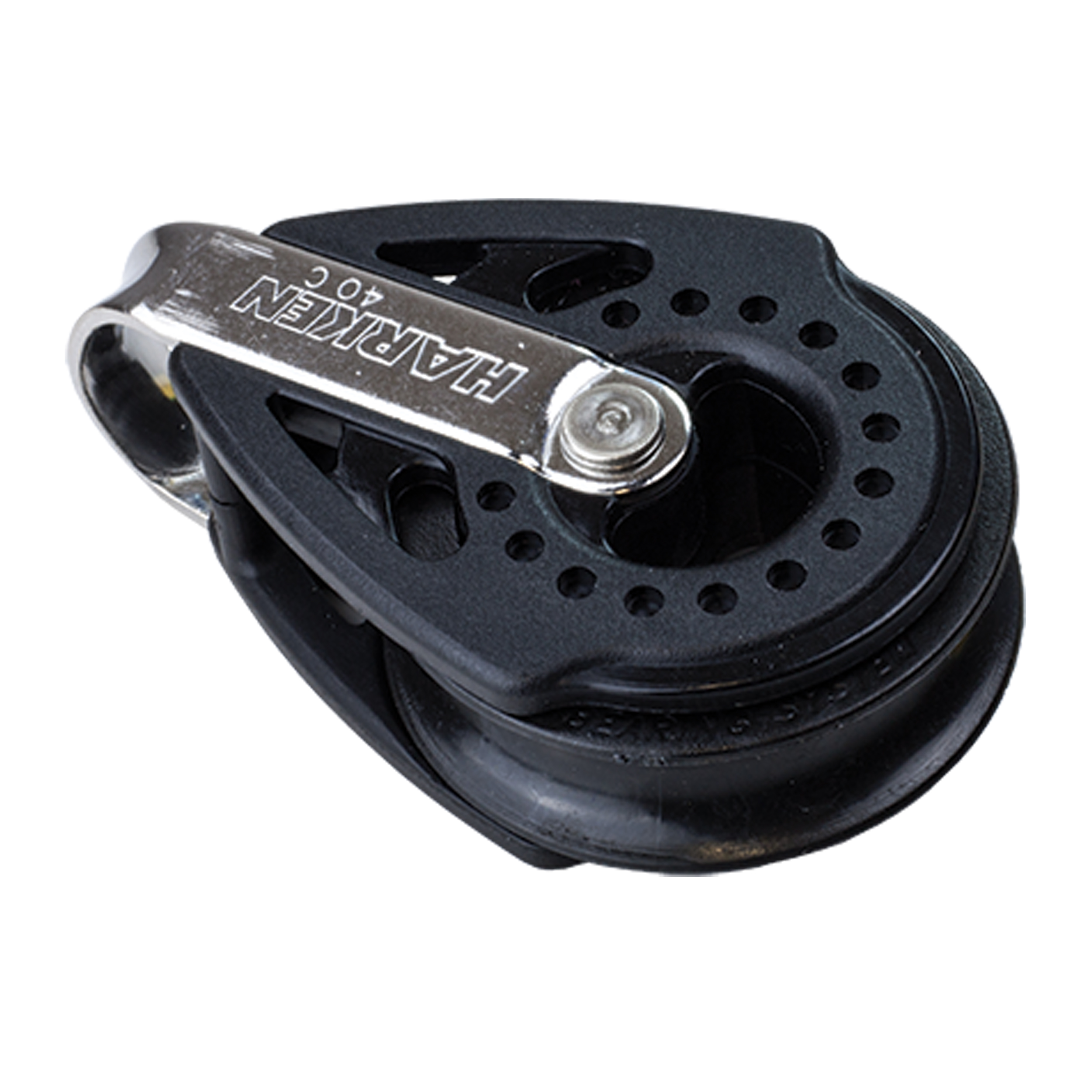 Harken 40 mm carbo block. Compact and extremely strong ball bearing block. Ultra lightweight for mainsheets and control lines. This block can be used as becket block too.