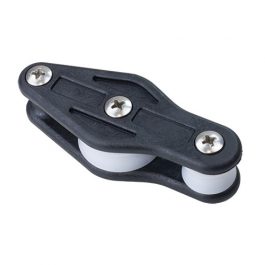 Plain bearing block with nylon cheeks and acetal sheaves. Lightweight, very affordable mainsheet block designed for Optimists and other small dinghies.