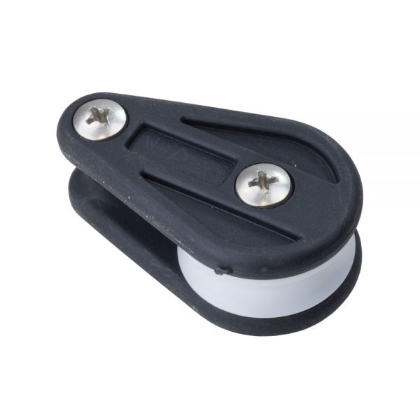 Plainbearing block with nylon cheeks and acetal sheave. Lightweight, very affordable mainsheet block, designed for Optimists and other small dinghies.