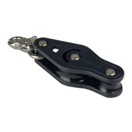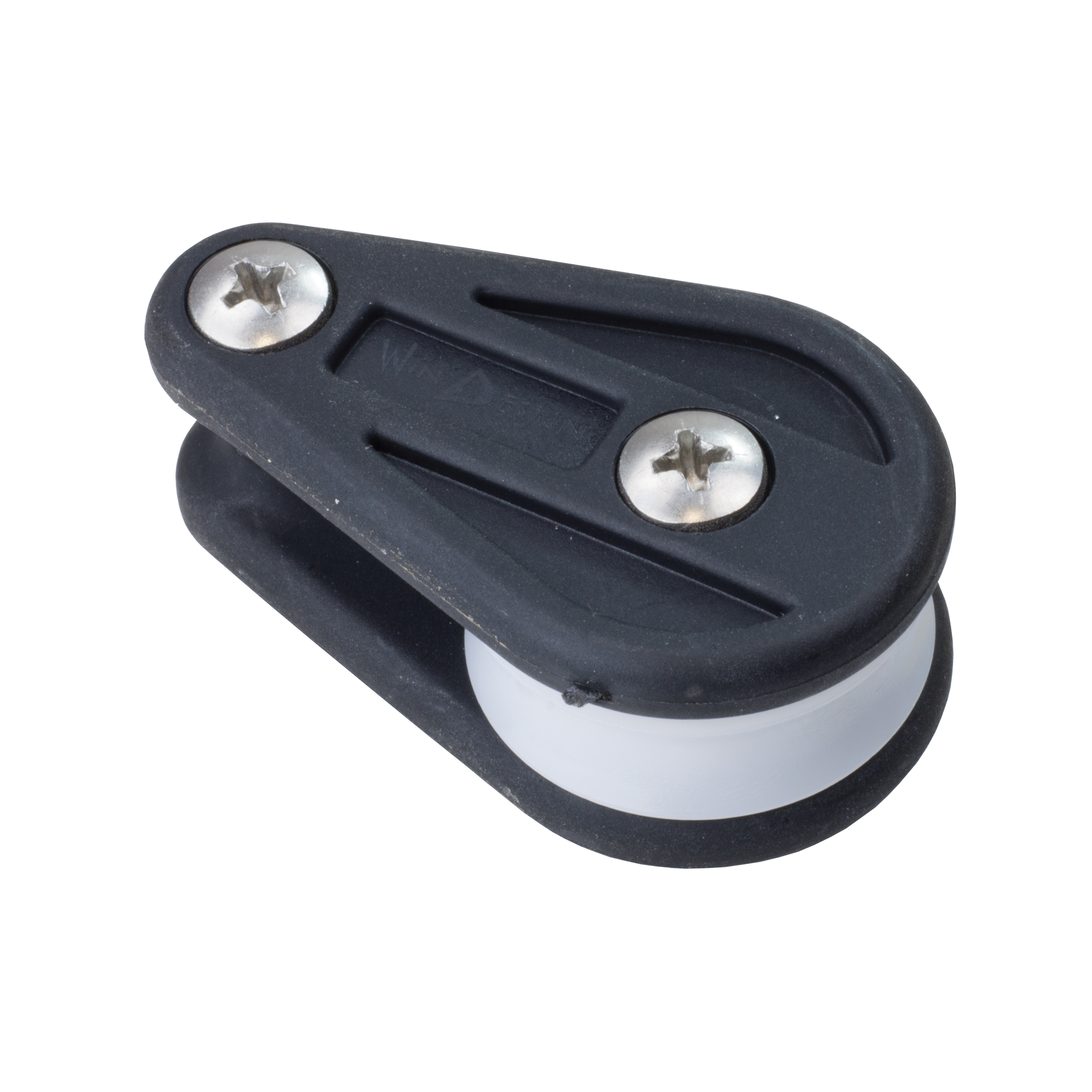 Plainbearing block with nylon cheeks and acetal sheave. Lightweight, very affordable mainsheet block, designed for Optimists and other small dinghies.
