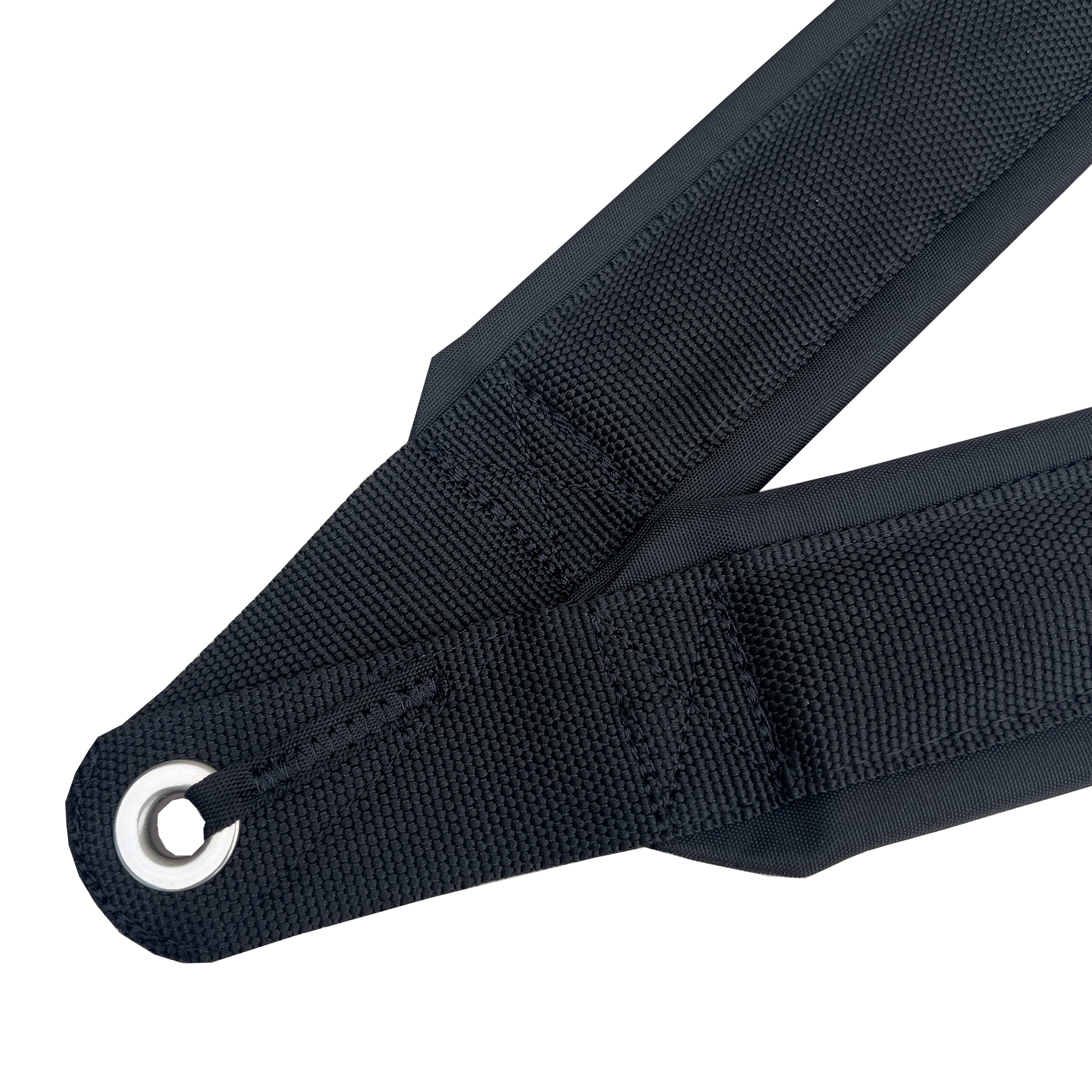 Padded 7 cm wide Optimist hiking straps and made of strong polyester webbing and covered with wear resistant cloth that is perfectly UV resistant. It’s filled with an extra stiff foam plate material, which does not absorb water. Strong stitched through construction and a rubber logo. Aft end a pressed ring and sewn flat to prevent twisting.