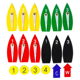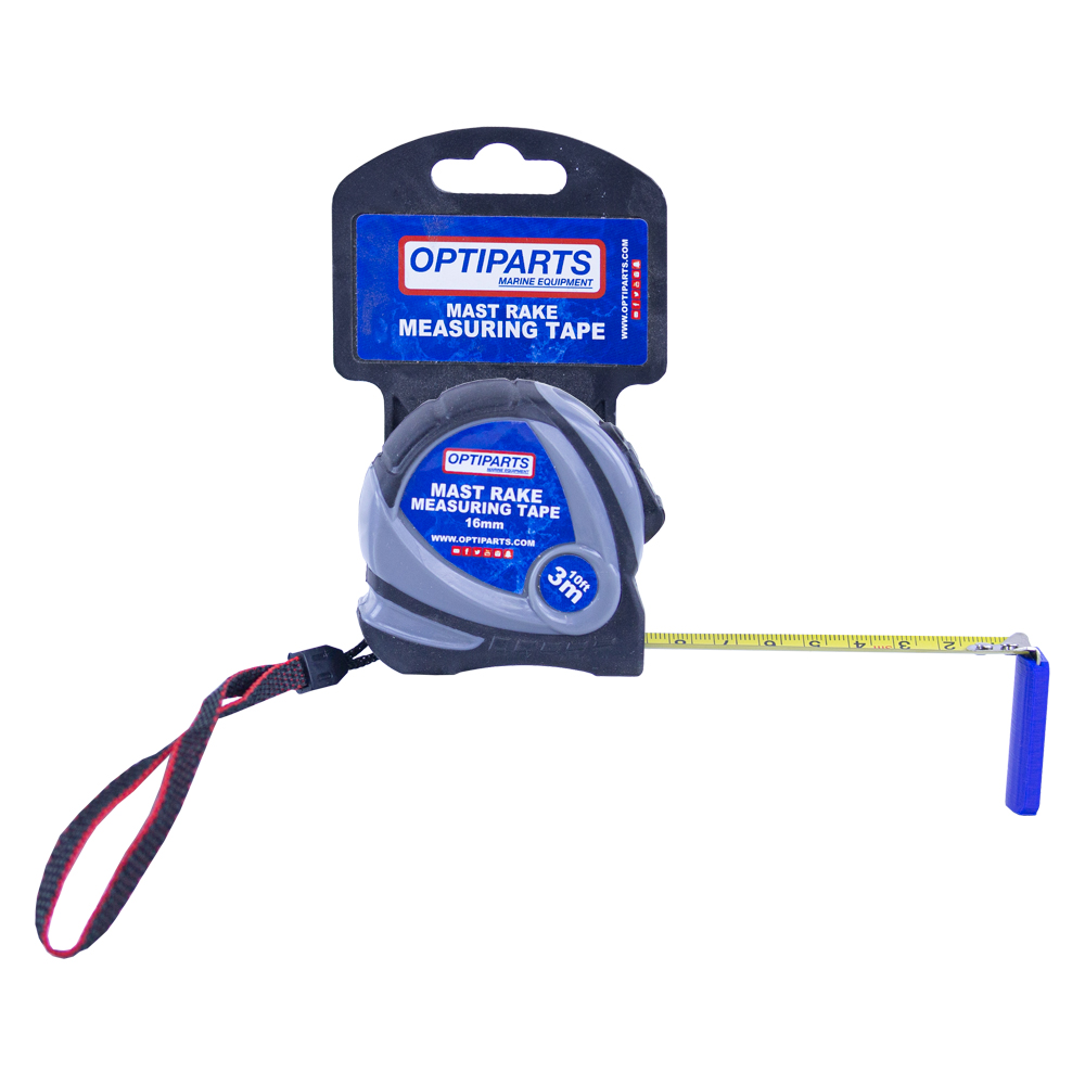 It has never been so easy to measure and adjust your Optimist mast rake before your training or regatta. Place the special hook in the top-aft of the mast and measure the distance to the edge of the deck. The blade shows imperial units (inches) and metric units (centimeters).