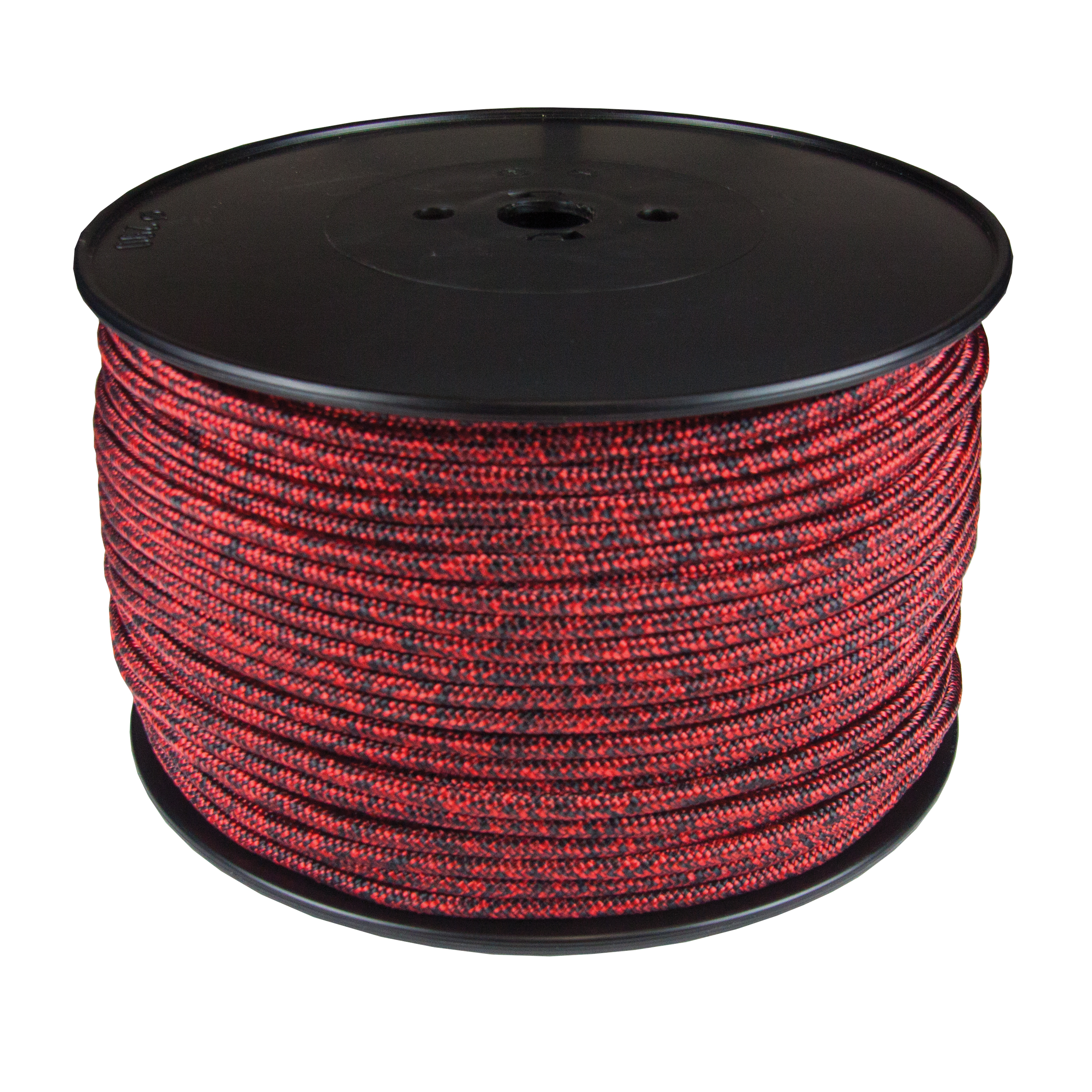 This double braided red mainsheet has a light high stretch multi-filament Polypropylene inner core and a braided Polyester cover which leaves the outer core to be the load bearer. Due to the unique design the outer core takes the load instead of the inner core. This helps to maintain stability and prevents the rope from tangling.