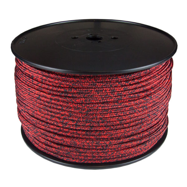This double braided red mainsheet has a light high stretch multi-filament Polypropylene inner core and a braided Polyester cover which leaves the outer core to be the load bearer. Due to the unique design the outer core takes the load instead of the inner core. This helps to maintain stability and prevents the rope from tangling.