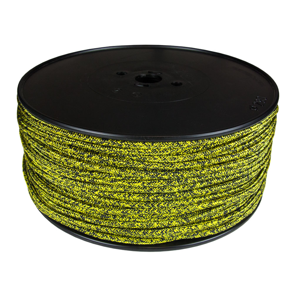 This double braided yellow mainsheet has a light high stretch multi-filament Polypropylene inner core and a braided Polyester cover which leaves the outer core to be the load bearer. Due to the unique design the outer core takes the load instead of the inner core. This helps to maintain stability and prevents the rope from tangling.