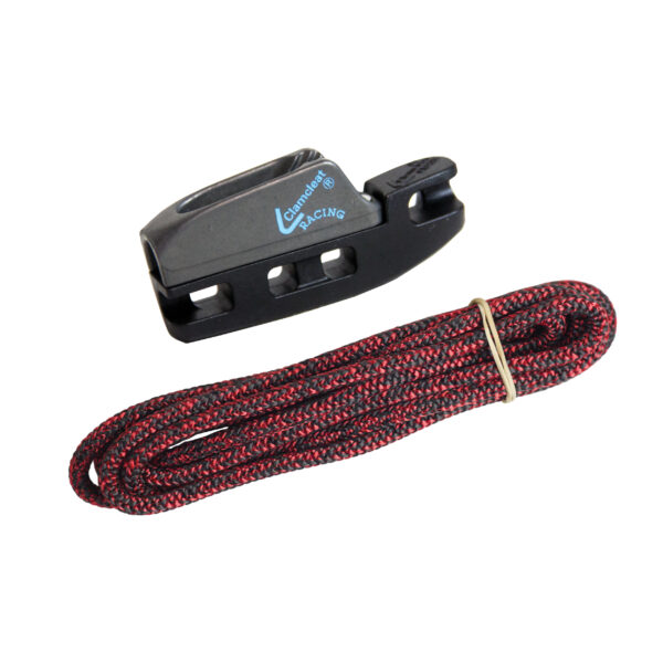 Recent rule changes allows the use of this Clamcleat to make a hiking strap adjustment system. Comes with a 4 mm DB-Racing line, consists of a Dyneema® core and Technora / polyester cover for ultimate durability and grip. Cut at ideal length for direct use and the ability to add a loop handle or braided handle.