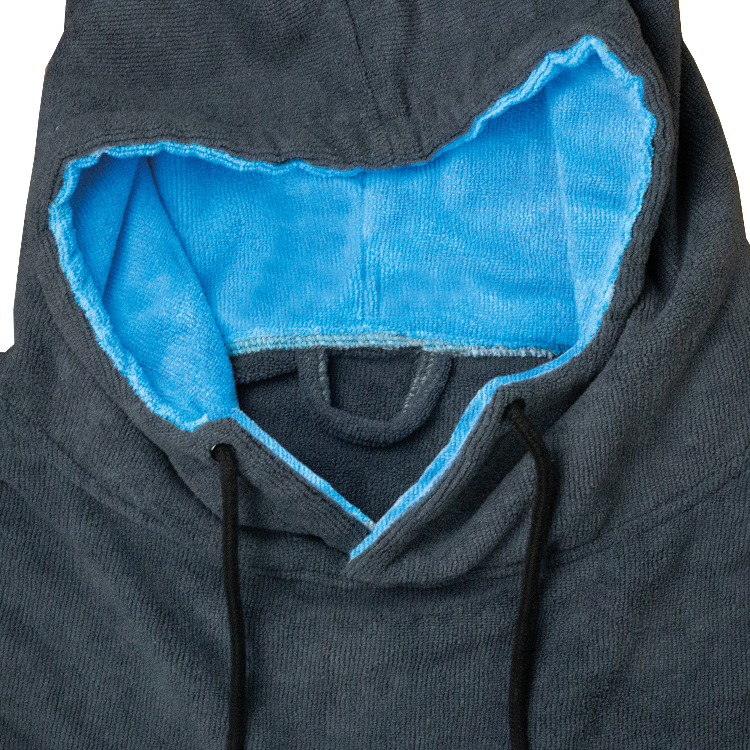 The quick dry, soft and hairy TERRY fabric offers comfort and warmth to your skin. This fabric has many protruding loops of thread which can absorb large amounts of water. The oversized hood helps to dry hair and protects from wind and sun. The longer back edge gives some extra comfort and protects your lower legs against the cold and the kangaroo pocket will keep your personal belongings close.