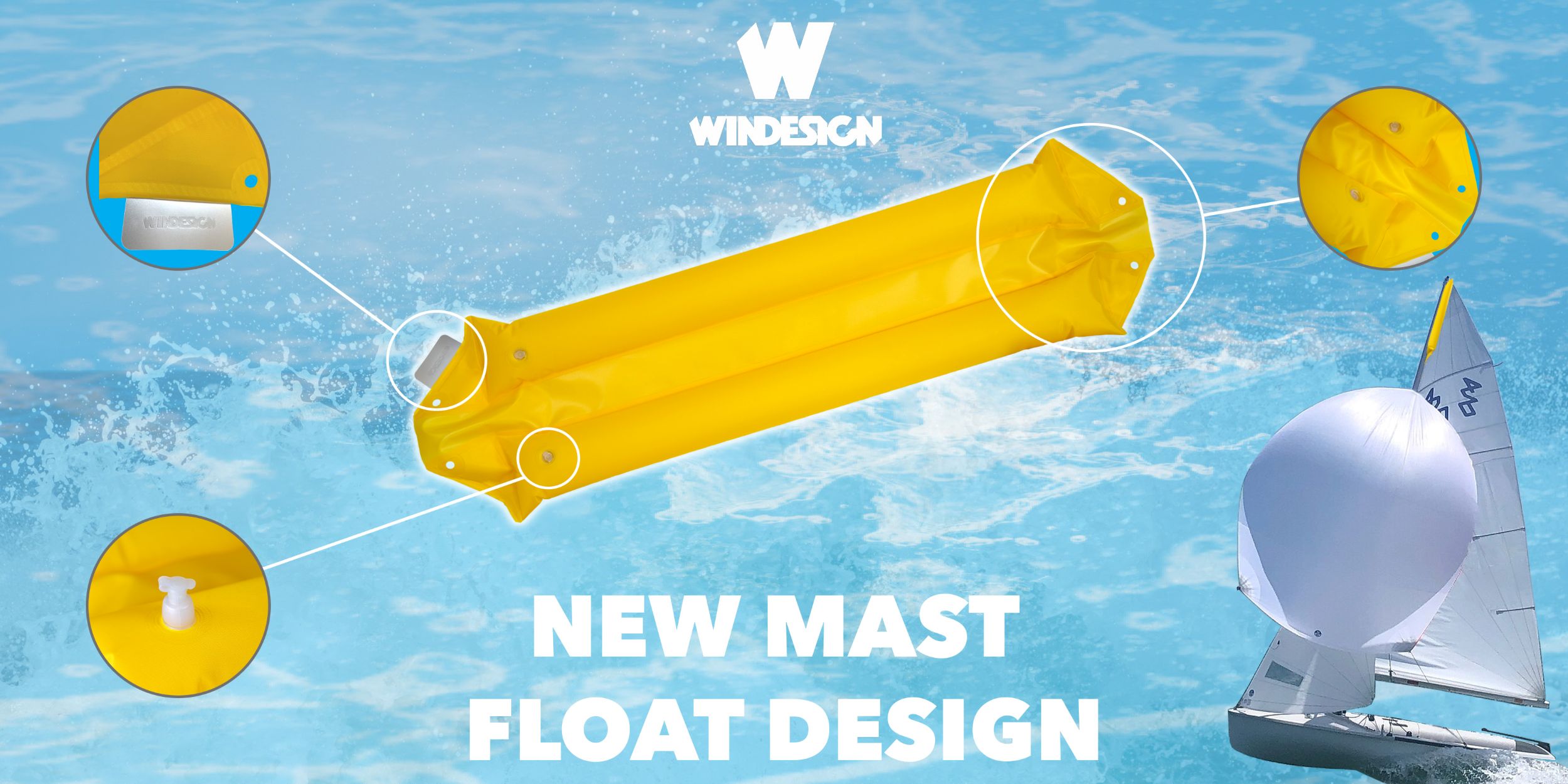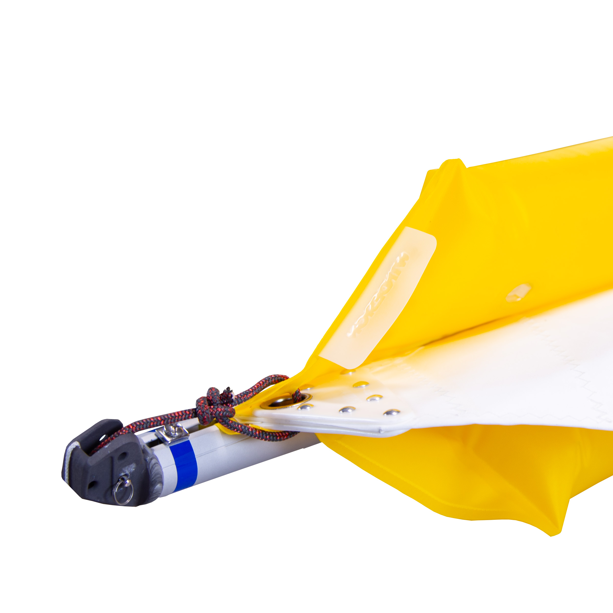 This mast float significantly reduces the risk of inversion. Its very clean and light design contains 2 inflatable tubes and is made from a single fabric. The mast float slides into the sail track and can be connected to the sail with the eyelets at the top and bottom. The single fabric ensures that hoisting the sail is a smooth operation.