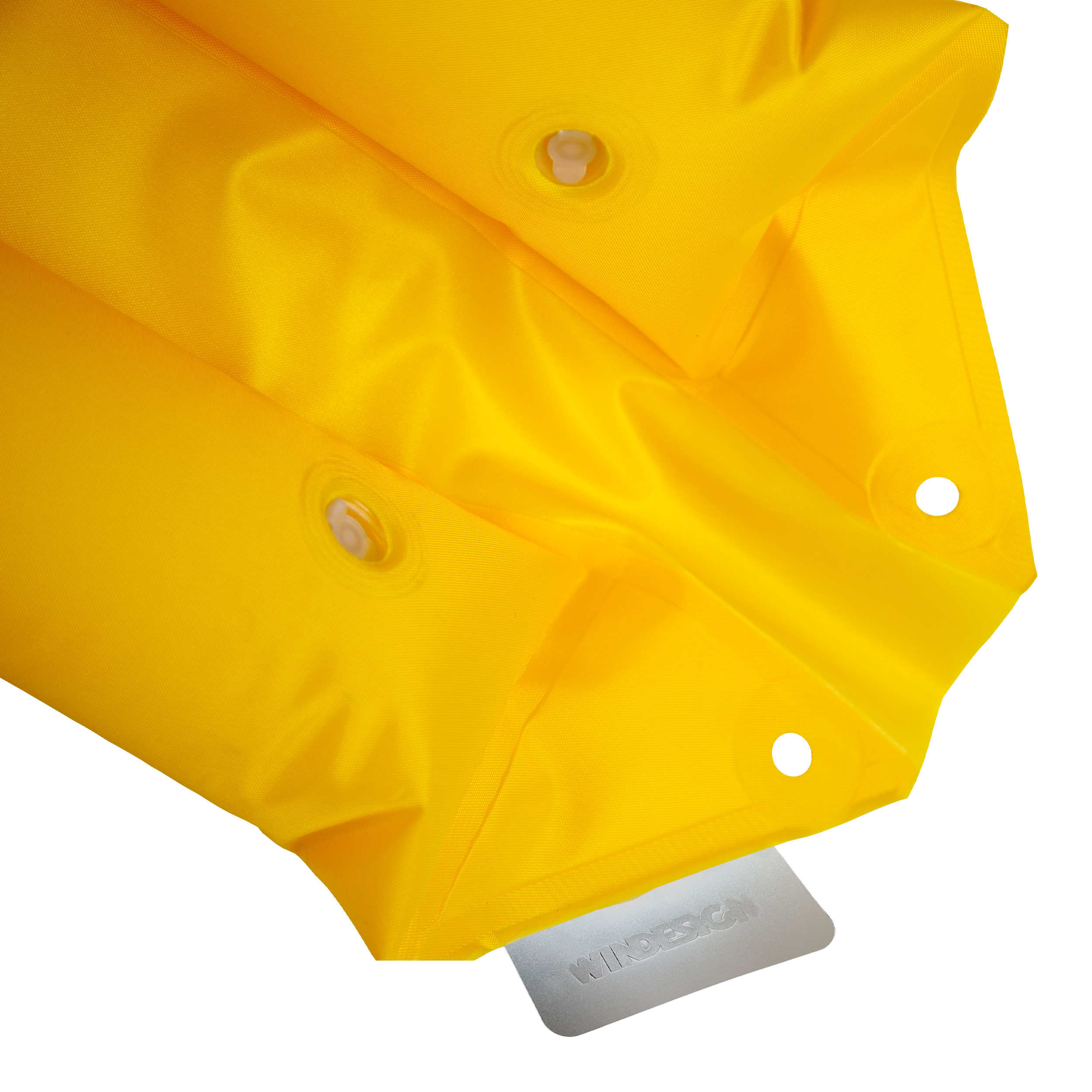 Fully inflated, the mast float is 105 cm (41.3 inch) in length and can be folded flat to 18 by 27 cm (7.1 by 10.6 inch) for ease of storage.