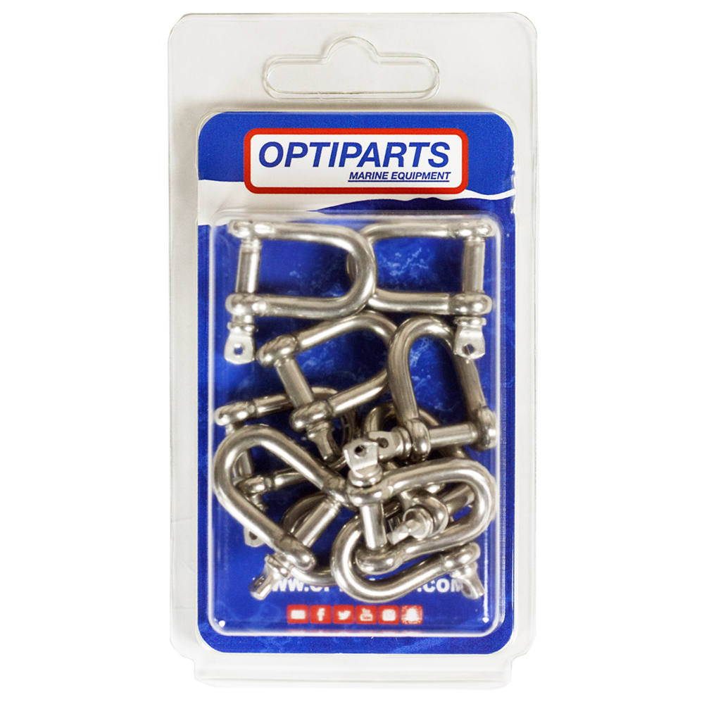 Stainless steel d-shackles. Packed per 10 pieces in a blister packaging.